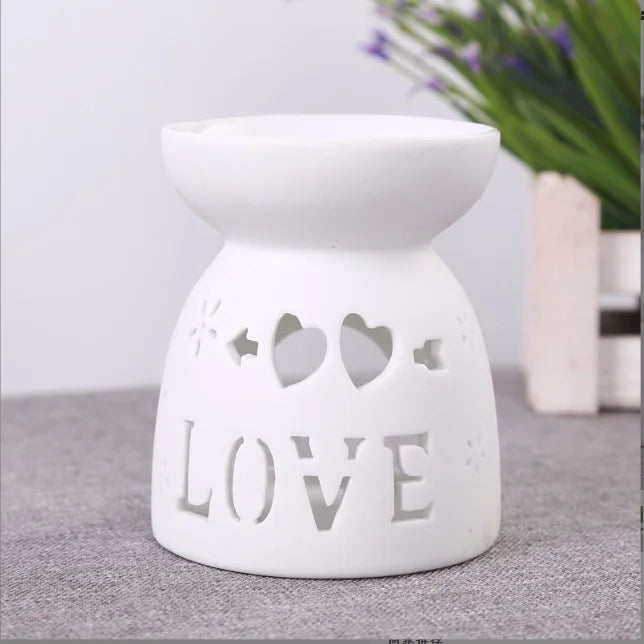 This ceramic aroma burner is designed for use with essential oils, wax melts, or tealight candles. Made from durable pottery with a metal, rust-resistant shelf, it functions as both a decorative piece and a practical fragrance warmer. Suitable for daily use in living rooms, bedrooms, or any home setting.